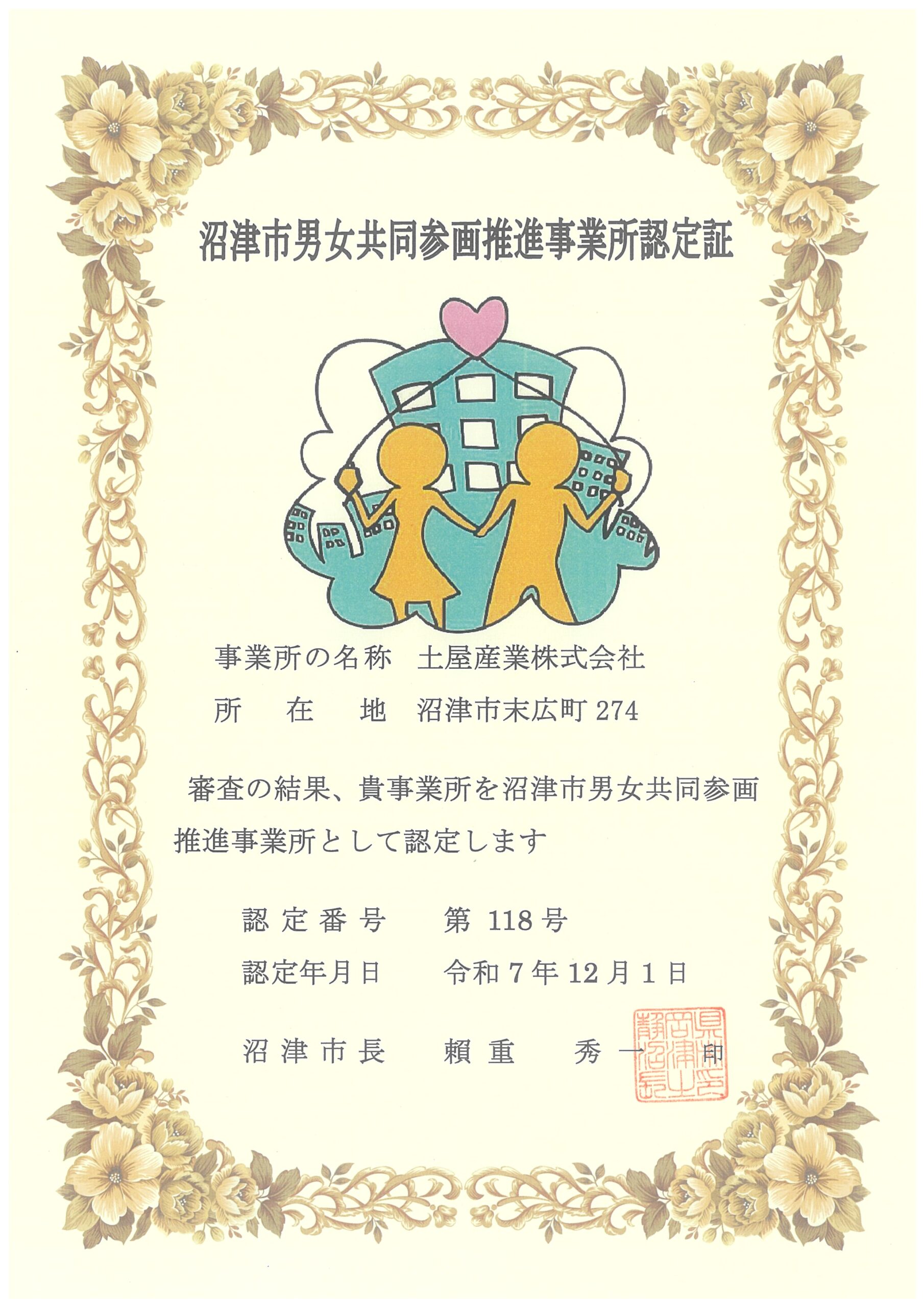 静岡県交通基盤部が定期的に行っている、建設関連業務において優れた業務を履行した企業を表彰する制度で、過去に3回表彰を受けた実績があり、令和元年10月には台風19号による災害復旧事業に対し、静岡県沼津土木事務所より感謝状を受け取るなど、技術力の高さや誠実な対応を高く評価されています。